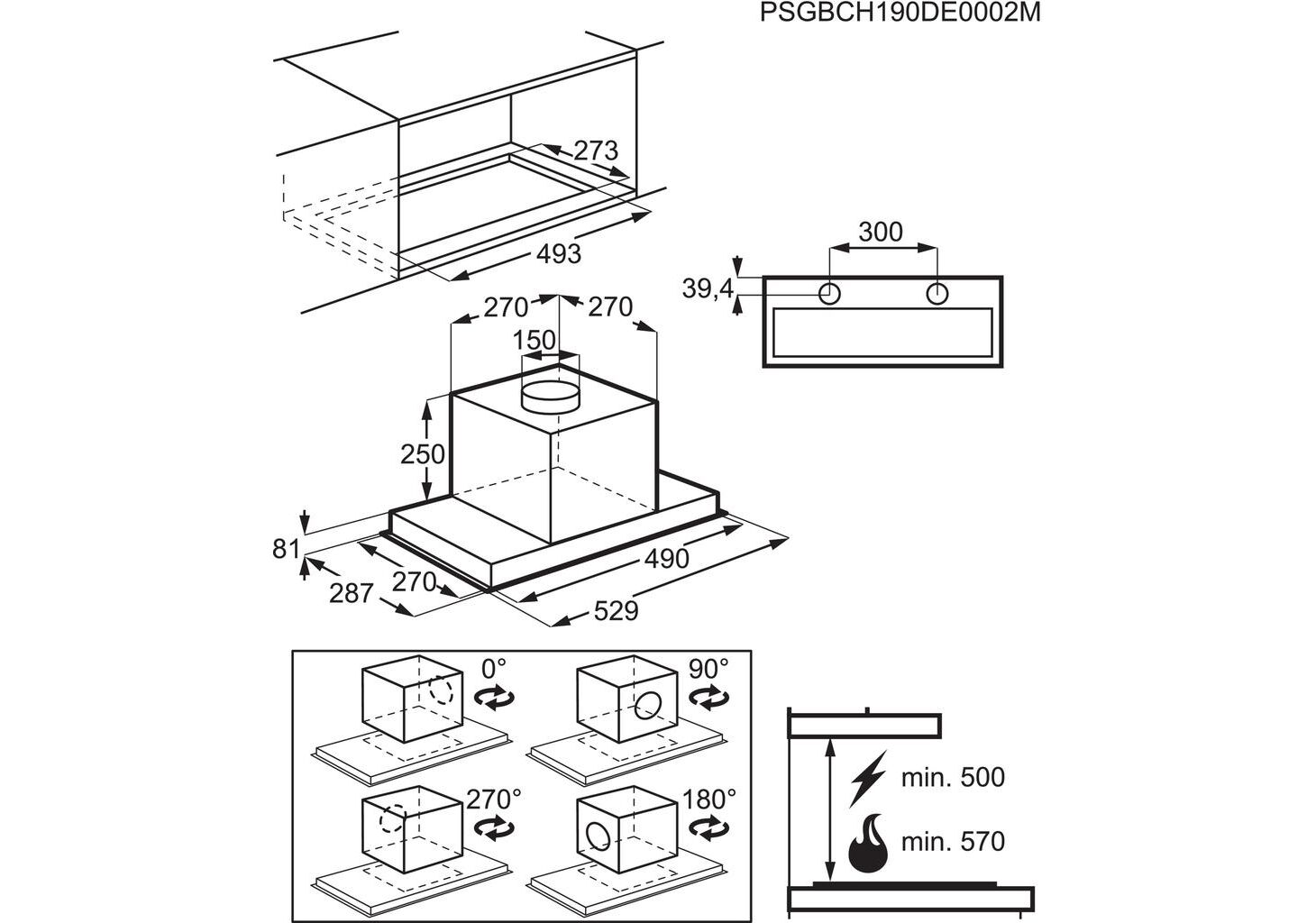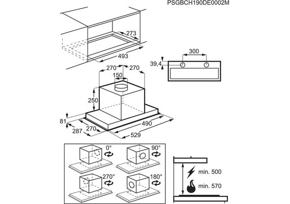 Nosūkšanas jauda (maks./min.): 450 / 285 m³/h