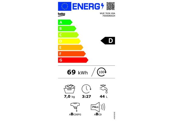 Потребление электроэнергии в 100 моющих циклах (2021) (стиральные машины) 69 kWh