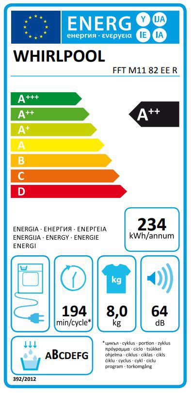 Энергопотребление за год (160 циклов)    234 kWh