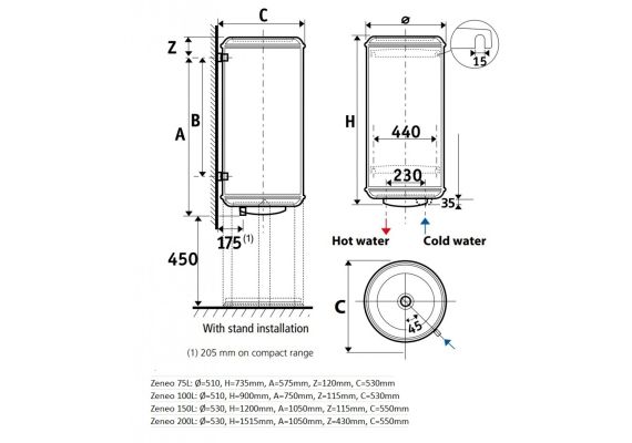 Ūdens sildītāja veids:    Vertikāls