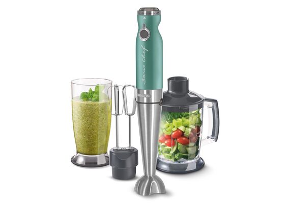 | Komplektā | Blendera kāja, miksēšanas uzgalis, jaukšanas glāze (0.8l), smalcinātājs (1250ml) |