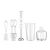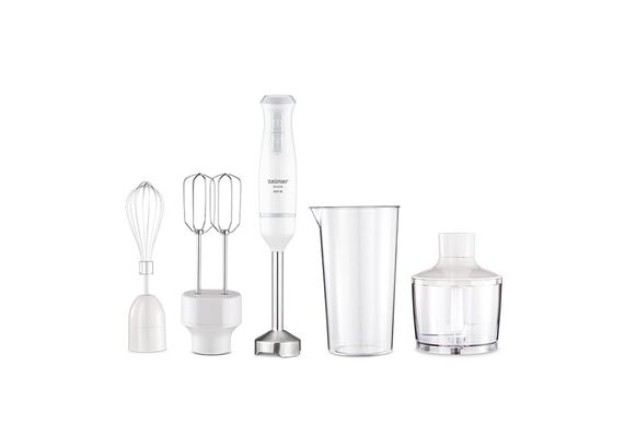 | Komplektā | Putošanas uzgalis, miksera uzgalis, smalcinātajs (450ml), mērglāze |