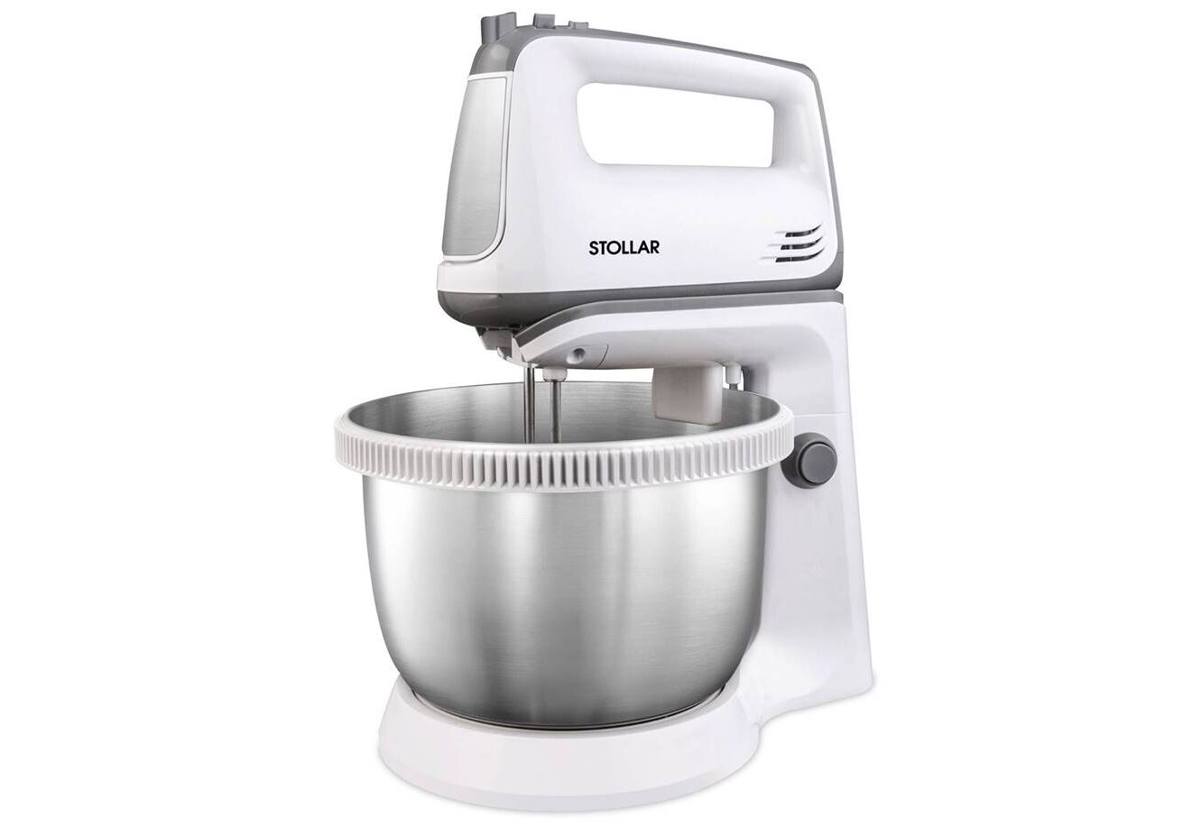| Papildu informācija | 3.5 litru ietilpīga rotējoša nerūsējošā tērauda bļoda. Iespējams izmantot gan kā rokas mikseri, gan kā mikseri uz statīva. |