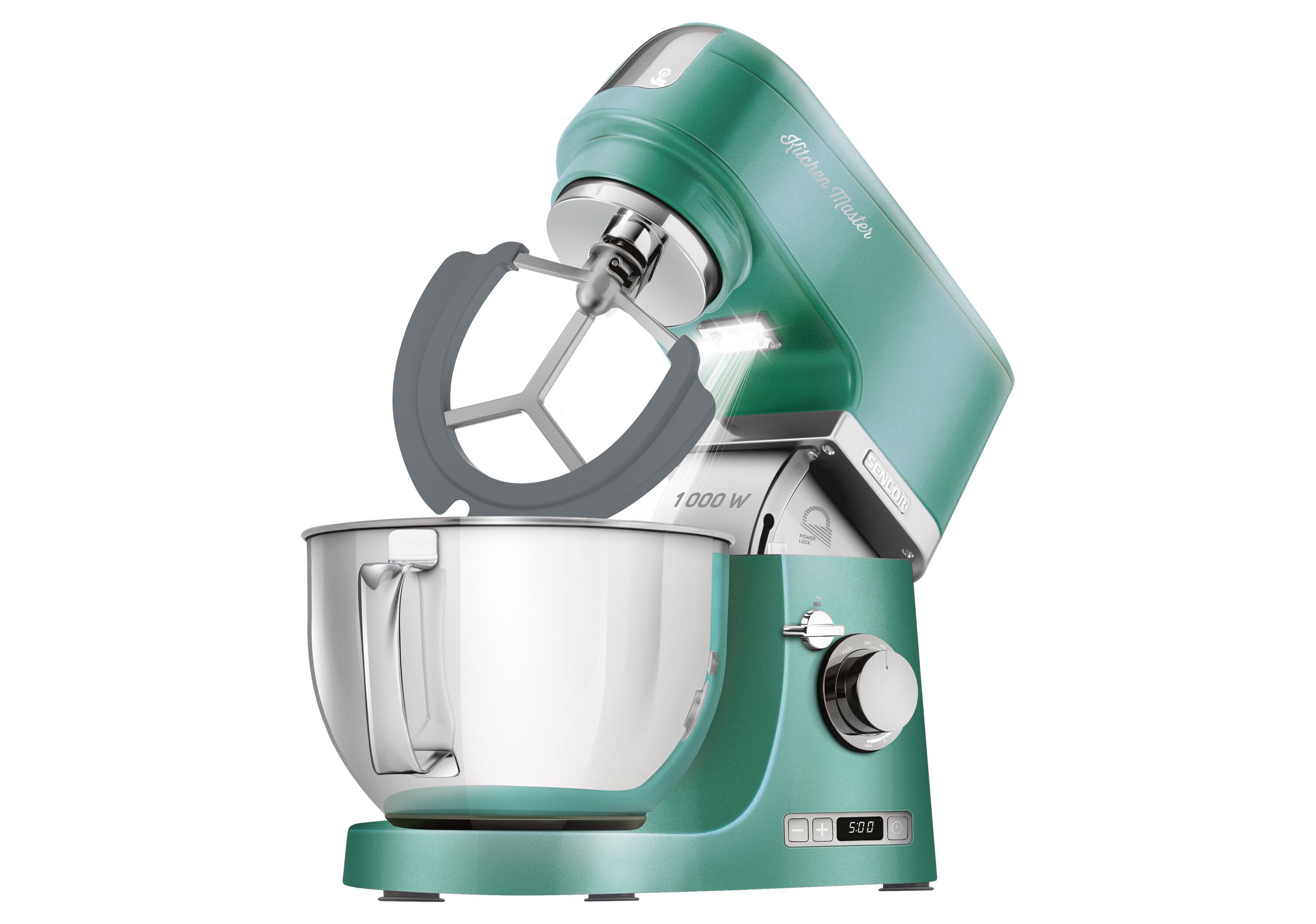| Komplektā | 4,5 litru nerūsējošā tērauda trauks ar mērīšanas skalu; 3 l bļoda ar mērīšanas skalu; 1,5 litru maisītājs, kas izgatavots no materiāla TRITAN BPA FREE; Gaļas maļamā mašīna rupjai un smalkai malšanai; 3 uzgali mīcīšanai, pātagai un vieglai mīklai; Īpaša slotiņa slotiņa FLEXI vieglas mīklas mīcīšanai; Uzgalis desu gatavošanai, 2 platuma iespējas; Cepumu griezējs |