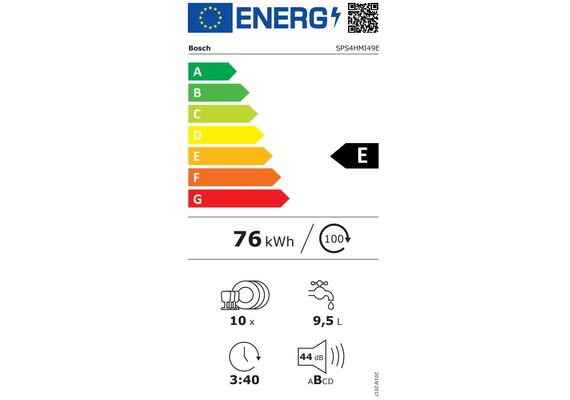 | Потребление электроэнергии в 100 моющих циклах (2021) (посудомоечную машины) | 76 kWh |