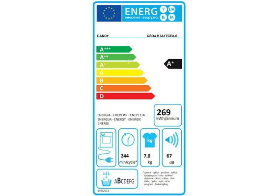 Elektroenerģijas patēriņš gadā (160 cikli) (kw/h)    269 kWh