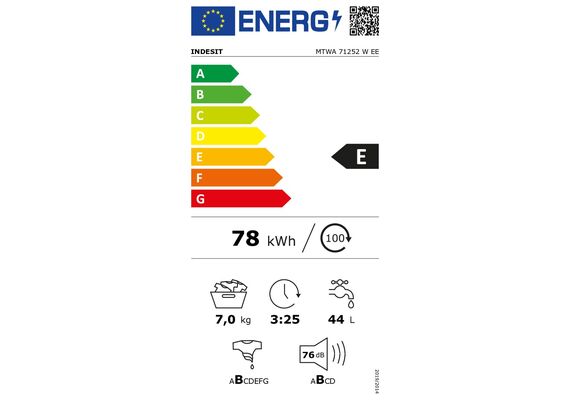| Elektroenerģijas patēriņš 100 mazgāšanas ciklos | 78 kWh |
