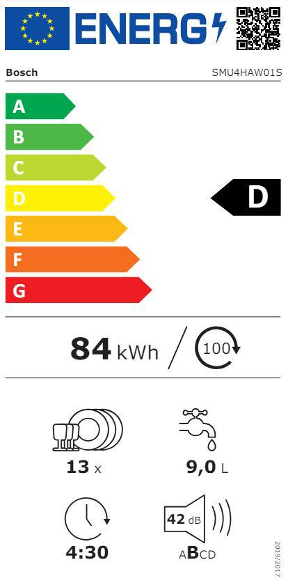 Потребление электроэнергии в 100 моющих циклах (2021) (посудомоечную машины) 84 kWh