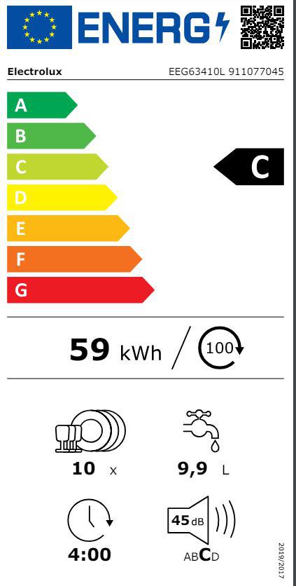 Потребление электроэнергии в 100 моющих циклах (2021) (посудомоечную машины) 59 kWh