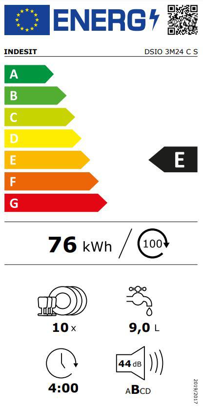 Потребление электроэнергии в 100 моющих циклах (2021) (посудомоечную машины) 76 kWh